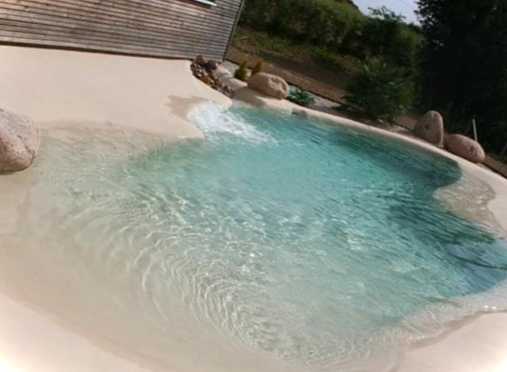 - Облаштування піщаної зони. Зона пляжу з піском користуватиметься дуже великим попитом, тут можна розмістити шезлонги та засмагати. Пісок нагрівається і дозволяє вам швидше просохнути, по ньому приємно ходити, він робить пляж привабливішим. Очищену зону пляжу, від трави та верхнього шару ґрунту, рекомендується захистити дошками. Не варто робити пісочницю, дошки мають бути нарівні з основним ґрунтом, але створювати тим самим якусь зону з поглибленням. Це запобігає поступовому вимиванню піску і змішуванню його з ґрунтом. Тут краще використовувати спеціальний очищений пісок, він більш приємний в експлуатації та створює порядок у пляжній зоні.