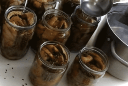 - А потім заливаю гриби підготовленим розсолом. Прикриваю банки капроновими кришками, можна закрити кришками, що загвинчуються, якщо дозволяє банку. Зберігають гриби в прохолодному місці, у підполі чи холодильнику.