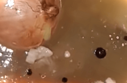 Додаємо в бульйон сіль за смаком, прибираємо піну, що залишилася, і зменшуємо вогонь до повільного і варимо 4 години. Через 4 години додаємо цибулини і всі приготовлені спеції. І варимо ще 2 години. До цього часу м'ясо має добре відходити від кісток.