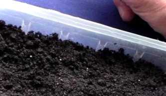 На дно ємності насипають як дренаж дрібний керамзит, яєчну шкаралупу. Дренаж необхідний, щоб не було застою вологи. Поверх насипають землю на 2/3 висоти ящика. Потім добре зволожують ґрунт водою з розпилювача.
