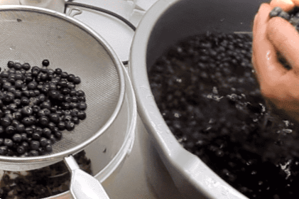 Руки, забруднені соком чорниці, дуже погано відмиваються, як і одяг. Тому позбутися темно-синіх плям на руках можна, зануривши руки на кілька хвилин у розчин лимонної кислоти, або потріть руки скибочкою лимона.Потім ягоди опускають у таз з водою, обережно перемішавши, збирають зверху сміття, що спливло. Потім їх перекладають на друшляк, щоб стекла вода,