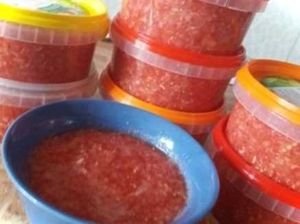 Виходить дуже смачна, ядрена приправа. Вона може зберігатися у холодильнику до 3 місяців.