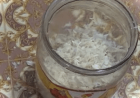 Крок 6. Готову масу перекладаємо у маленькі баночки. З цієї кількості інгредієнтів вийшло 2 невеликі баночки приправи. Забираємо їх у прохолодне місце (у холодильник) на добу. Через добу хрін готовий і його можна використовувати в їжу.