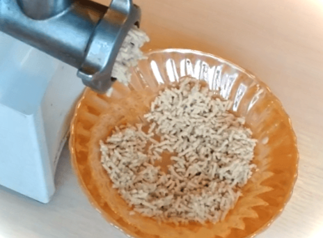 Щоб полегшити і прискорити цей етап, наріжте коріння дрібними шматочками і пропустіть його через м'ясорубку, не важливо: вона ручна або електрична. Але не забудьте одягнути на м'ясорубку поліетиленовий пакет і туго обяжіть його резинкою або прикрутіть колесом м'ясорубки.
