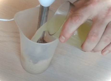 Крок 3. Для отримання гомогеннішої і ніжнішої консистенції подрібнений хрін перекладаємо в іншу ємність і протираємо прокручену масу ще блендером.