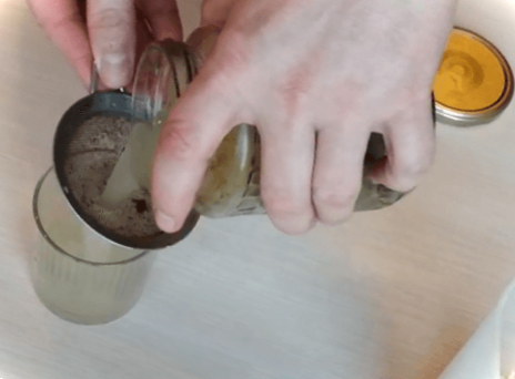 Крок 3. Через 10 хвилин банку з хріном накриваємо марлею і через неї проціджуємо буряк, що настоявся, сік. Сік повинен покрити кашку приблизно на 1,5-2 см вище. Перемішуємо.