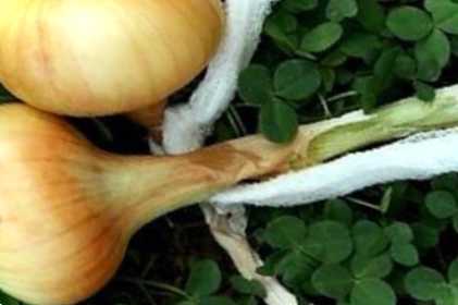 Сушити цибулю потрібно на вулиці. Попередньо покласти на землю полотняний або інший тканинний мішок, який пропускає повітря. Цибулю скласти в рядок. На ніч занести в приміщення, інакше до ранку плоди знову стануть вологими від ранкової роси і доведеться сушити заново.