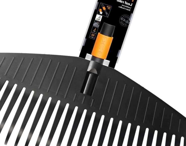 Зуби на цих граблях розходяться віялом (фото) і півколом, що надає їм більшої ширини. Зуби роблять граблі ефективними при збиранні великої кількості листя. Крім того, граблі мають посилену рукоятку зі скловолокна з конструкцією з потрійними стінками для довговічності, включають двосторонні опорні виступи на зубах для запобігання поломці та мають конструкцію з кутом нахилу 90 градусів на зубах для більшої ефективності.