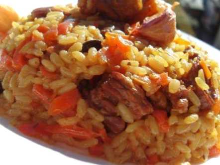 Плов із яловичини відрізняється низьким вмістом жиру, а подавати його рекомендується з густим натуральним йогуртом.