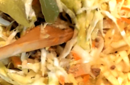 Дуже проста страва, яка готується тільки з одних овочів: капусти, моркви, цибулі та картоплі. Тому таку страву дуже добре готувати в піст чи тим, хто вважає калорії.