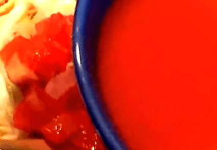 Викладаємо свинячу тушонку на тарілку і дрібно нарізаємо м'ясо, а потім додаємо її до овочів. Після чого додаємо 3 ст. л. краснодарського соусу, солимо до смаку, кладемо перець горошком і лавровий лист.