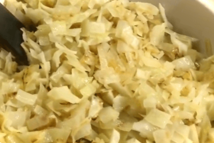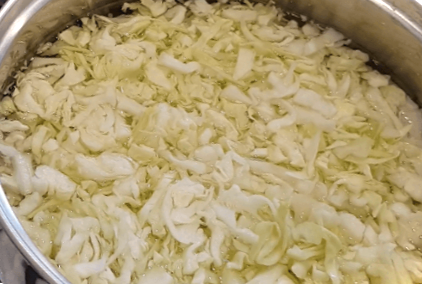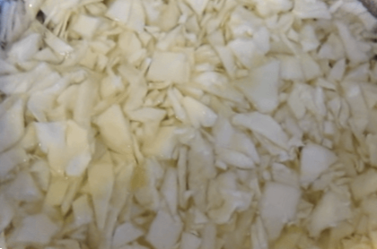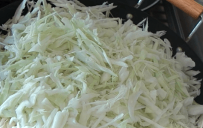 Для приготування краще взяти сковороду глибше, оскільки спочатку нашаткований овоч займає більший обсяг. Пізніше, у процесі гасіння капуста осідає. Тому при готуванні враховуйте цей момент.
