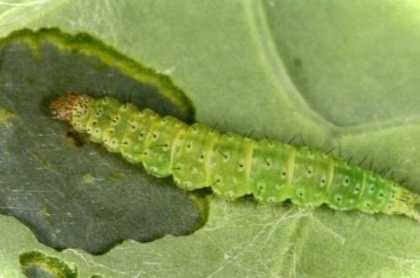 Самі личинки теж дрібні, їх одразу і не помітиш, тим більше вони знаходяться на нижній стороні листка. Зате дірки на аркуші можна помітити відразу.