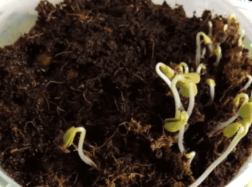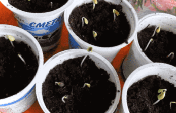 - Приблизно через 150 днів сходи пікірують у 200-грамові пластикові баночки, наприклад, з-під сметани. На дні банки зробіть дренажні отвори, заповніть покупним поживним грунтом або родючою землею з городу. Банки ставлять на тацю і прибирають у тепле місце. При пікуванні по можливості приберіть шкірку з насіння, вона надалі уповільнює зростання рослини.