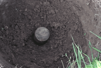 - Викопують яму 85х85 см та глибиною 1 метр. На дно ями кладуть полум'я шматок шиферу, розміром, рівним дну ями;