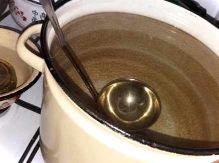 В окремій чашці кип'ятимо кришки протягом 5 хвилин і ложку, якою діставатимемо кришки з окропу.