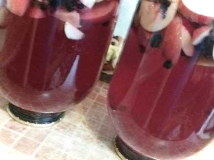 Для надання красивого кольору, до фруктів можна додати жменю чорниці або смородини.