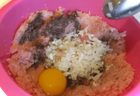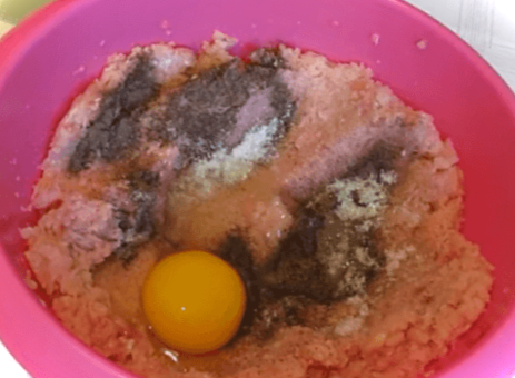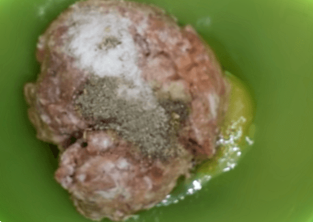 У фарш відправляємо сіль, мелений перець та 1 яйце.