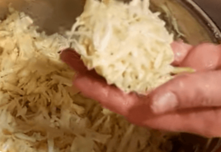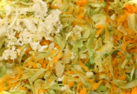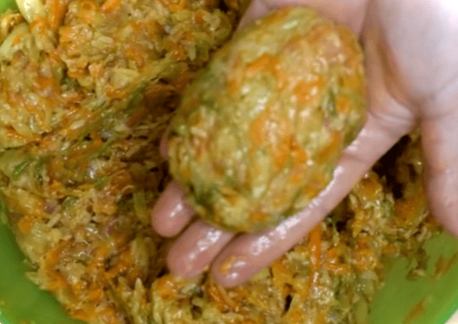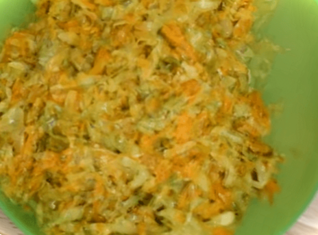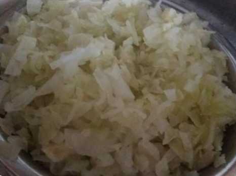 Відварений овоч відкидаємо на друшляк, даємо стекти зайвій воді і трохи охолонути. Потім капусту, моркву та цибулю пропускаємо через м'ясорубку. За бажання моркву можна натерти на дрібній тертці.