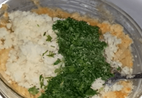 і овочеву засмажку, знову все добре перемішуємо руками.
