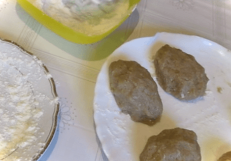 Готовий фарш може здатися рідким, додайте тоді 2 ст. л. борошна.Приготовлений фарш залиште на 10-15 хвилин, щоб він настоявся, а манка набрякла.