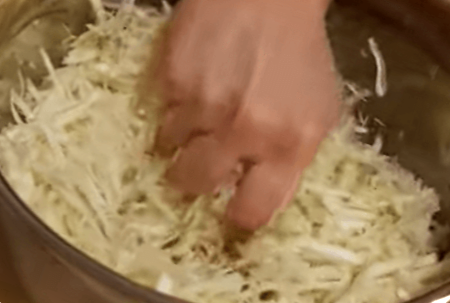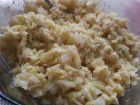 Залишаємо капустяну масу на 10-15 хвилин, щоб манка набрякла.