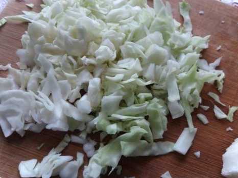 Крок 2. Поки вода нагрівається, тим часом дрібно нарізаємо капусту.