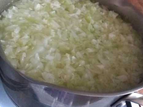 Крок 4. Коли капуста звариться і стане м'якою, відкидаємо її на друшляк, щоб стекла вода. Залишіть її на кілька хвилин, щоб вона охолола. А можна просто обдати її холодною водою.