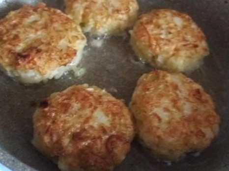 Крок 3. На розігріту сковороду наливаємо трохи олії. Вологими руками формуємо котлетки, обвалюємо їх у панірувальних сухарях. Обсмажуємо їх із двох сторін до золотистого кольору. При цьому вони добре перевертаються, не розвалюються.