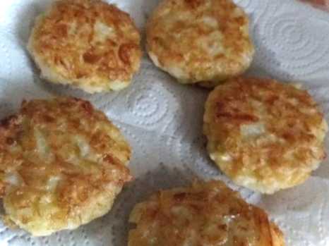 Котлети виходять ніжними, і здається, що знімаючи їх зі сковороди, вони можуть розвалитися. Однак за рахунок борошна та яєць вони стають досить щільними.Готові вироби перекладаємо на паперовий рушник, щоб увібрався зайвий жир.
