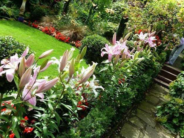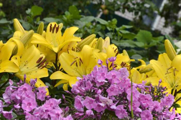 Красива самобутня клумба з чим добре поєднуються лілії та флокси