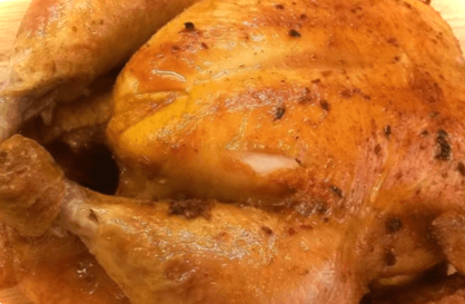 Курка, запечена в духовці повністю з хрусткою скоринкою