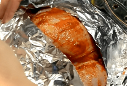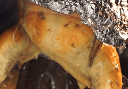 За 15 хвилин до готовності фольгу розгортаємо і даємо курочці підрум'янитися і покритися хрусткою скоринкою.