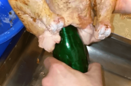 Джерело: https://youtu.be/XwJsdbfBJHMРецепт курки з скоринкою на пляшці цілком
