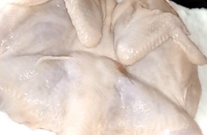 Спочатку прибираємо все непотрібне: шкіру біля шиї, гузку і жир внизу тушки, потім миємо та сухим паперовим рушником зовні та всередині. Важлива умова: курка має бути обов'язково сухою.