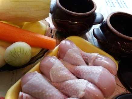 Насамперед приготуйте ємності, в яких вони будуть тушкуватись, вони повинні бути зроблені з кераміки і ще краще, якщо вони будуть з кришечками. Тоді пара не йтиме, тим самим курочка та овочі приготуються швидше. Якщо кришок на горщиках немає, тоді вміст ємностей перед тим, як їх відправити в духовку, щільно прикрийте фольгою.