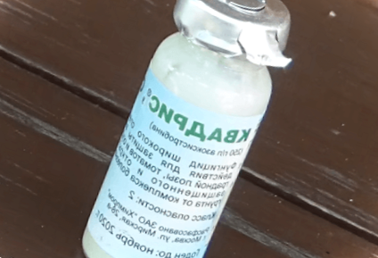 - Квадріс - розлучається з розрахунку 5 мл на 10 л води або 0,25 мл на 0,5 л води. Невелику кількість засобу можна відміряти за допомогою медичного шприца.