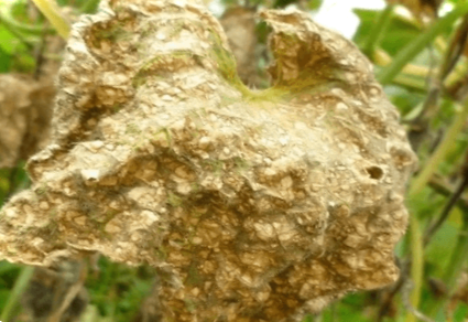 На нижній стороні листя з'являється грибковий наліт - сірий із чорними плямами.