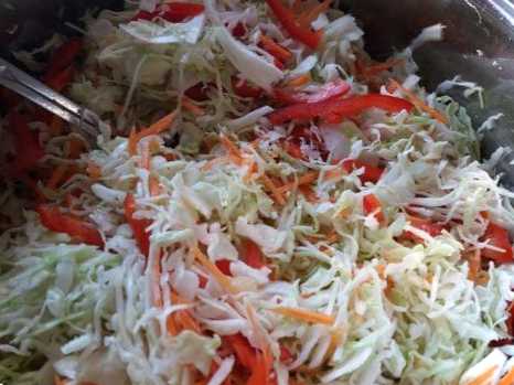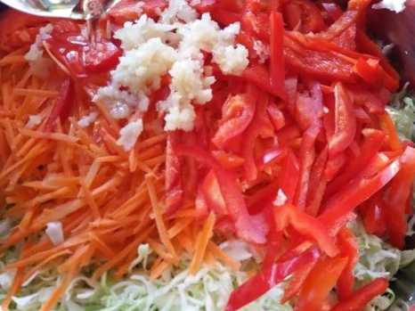 Капуста виходить красива, хрумка, саме цим вона багатьом і подобається. Апетитний вигляд їй надає червоний перець. Це чудове доповнення до м'ясних страв та гарнірів. Крім того, білокачанний овоч дуже корисний для кишечника і в цілому для організму.