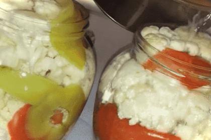 Наповнюємо банку суцвіттями, чергуючи їх із болгарським перцем, доверху.