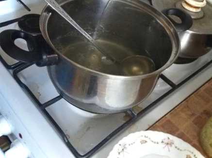 Через цей час воду зі банок зливаємо назад у каструлю і знову її кип'ятимо.