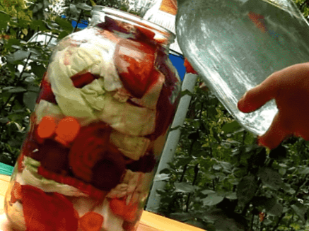 Джерело: https://youtu.be/6T4ranQ3kR0Рецепт маринованої капусти з буряком у банках