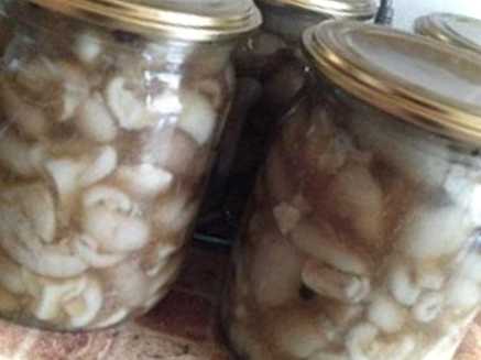 У стерильні банки чистою ложкою накладаємо в банки гриби разом із маринадом, прикриваємо банку кришками, але банки кришками не закочуємо. У великій каструлі на дно кладемо серветку і в теплу воду ставимо банки з грибами. Кип'ятимо (стерилізуємо) банки з грибами 10 хвилин, а потім закочуємо. Перевертаємо банки, щоб подивитися, чи щільно закатали їх, і залишаємо в такому положенні до повного остигання.