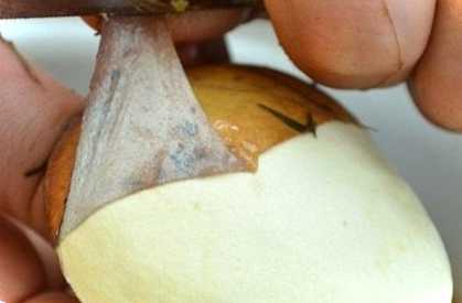 Знайте: масляниста плівка на капелюшку, якщо її не прибрати, надає готовій страві гіркуватий смак.Але знавці радять для спрощення цього процесу чистити їх за допомогою окропу. Для цього порцію грибів кладуть у друшляк і тримають над каструлею з окропом приблизно півхвилини. Або прямо в друшляку занурити гриби в окріп і потримати їх там 2-3 хвилини, а потім кілька разів занурити в холодну воду. Завдяки цим діям липка плівка добре знімається з капелюшка.