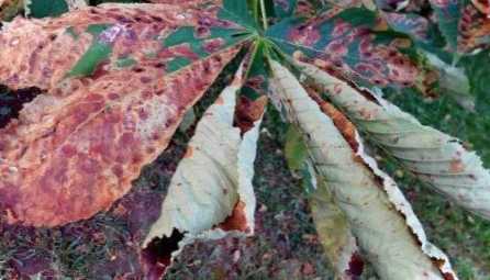 Наглядові садівники знають, що про появу хвороби на дереві каштана свідчать вузькі та звивисті ходи на листках. Їхнє забарвлення може відрізнятися залежно від типу мініруючої молі, що вражає рослину. Уражене листя після хвороби каштану (фото), як правило, опадає раніше часу, а плоди рослини не отримують необхідну кількість поживних речовин.