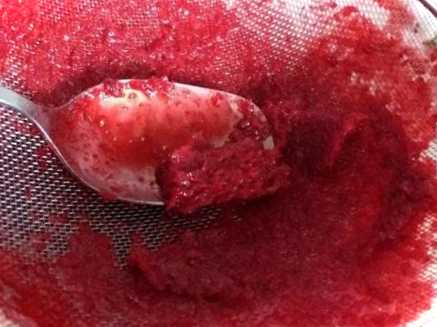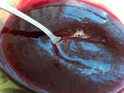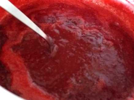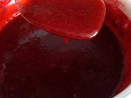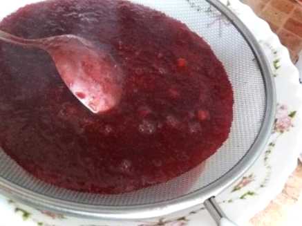 і ложкою протираємо її крізь сито. Це необхідно зробити для того, щоб ягідні шкірки не залишилися в соусі, а сам він, щоб став однорідною масою.