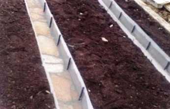 - Побутовий камінь - з даного матеріалу створюють фундаменти, підстави для огорож навколо ділянки. Можна поїхати на кар'єр, там знайдуться розколоті залишки бутового каменю, які можуть стати основою гарної огорожі навколо грядок. Якщо ви думаєте про те, з якого матеріалу краще зробити грядки з найбільшим терміном служби, камінь стане відмінним вибором. Камінь закопують у землю на 5-10 см, створюючи огорожу будь-якої форми. Виглядає все це естетично, служить дуже довго та витримає будь-які випробування. Камінь важкий, працювати з ним не дуже легко, та й вартість може бути великою.