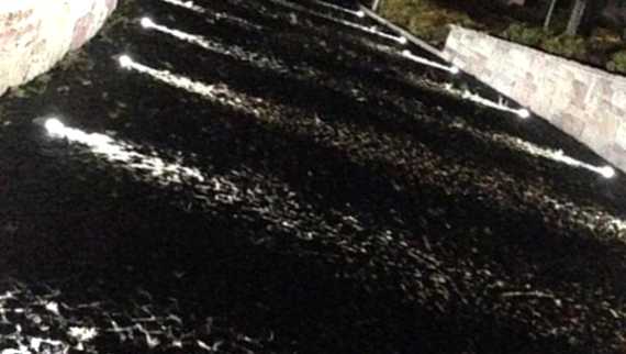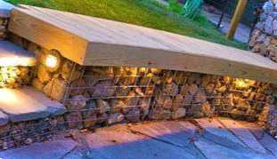 Більш стильно виглядають освітлені конструкції. Найпростіше розставити ліхтарі зверху, закріпивши їх у ґрунті або на бортику. Для підкреслення фактури поверхні світильники ставлять біля основи опори. Ще цікавіше виглядають прилади освітлення, вбудовані в тіло стінки, або з яскраво освітленими сходами сходів.