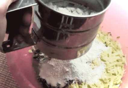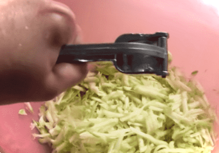 Після того, як кабачок віддав сік, рідину віджимають. Спочатку може здатися, що, натерши на тертці, його багато. Однак, після того, як з нього вийде рідина, його об'єм зменшиться рази в два.