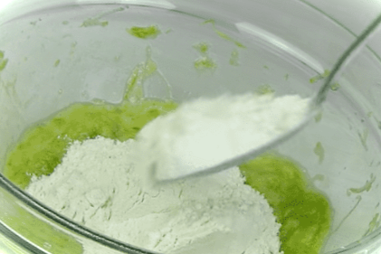 Потім додаємо 2-3 ст. л. борошна. Дивіться, щоб тісто вийшло трохи густішим, ніж на оладки.